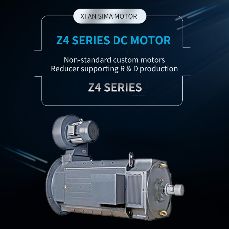 Z4 series DC motors: Center height 100-355mm is the standard series of small DC motors as stipulated in the People's Republic of China Machinery Industry Standard JB/T6316-92 "Z4 series DC motor technical conditions"; centre height 400-450mm is the expanded Z4 DC motor outside the standard series; centre height 500-710mm is the newly developed medium-sized DC motor of our factory. DC motor. This series of motors can be widely used in various industrial sectors such as metallurgical industry rolling mills, metal cutting machine tools, paper making, dyeing and weaving, printing, cement and plastic extrusion machinery.