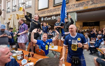 Tartan Army fans in Marienplatz. 'If there's no Scotland,there's no party',they saidCredit: Paul Grover/TelegraphOthers had taken over a business class flight from Dubai on their way here after a surprise upgrade saw several Scotland fans find themselves at the bar of an Emirates plane.“It’s been trains,planes and automobiles and now beer,” said one person on board,while his friend added: “I’m not sure I can put a price on this trip,don’t tell the wife.”They were sat next to Michael Wallace,41,who had taken son Evan,14,who was discreetly having a stein of Radler,and had travelled from Edinburgh via Stockholm,who added: “It’s a beer town,Scotland will drink its fair share of it. If there’s no Scotland,there’s no party.”Throughout the day locals were treated to Tartan Army lyrics including “Diego Maradona,he put the English OUT,OUT,OUT”,numerous renditions of the Proclaimers and endless versions of Flower of Scotland on the bagpipes.“We have every bit of hope about the game,” Stephanie Phinn,34,who was with her wife Lizzie,in her late 30s,and friends said.“These are better than we get in Glasgow,” she said as her wife and friends drank their latest stein. “Look around us,how good is this.”While the German football team may be less easy going tomorrow,locals were enjoying the company of this week’s tourists including Helmut Wanner,dressed in traditional German clothing,who decided to join in with the Scottish fans chants.“Kein Schottland,keine Party,” he said to the delight of those wearing blue and white around him.