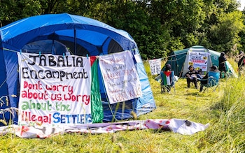 A Palestine Action camp outside Elbit's drone engine factory in Shenstone,Staffs. The group claims that Instro Precision is owned by Elbit