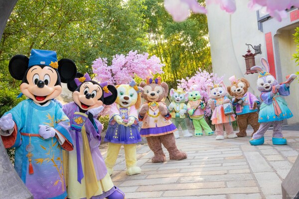 This love of Chinese traditions has also inspired a brand-new wardrobe for Duffy and Friends,filled with beautiful outfits adorned with flower and bird motifs like osmanthus flowers,lotus flowers,and peacocks. Guests will be able to see these dreamlike outfits throughout Duffy Month,during meetings,and in the spectacular "Enjoying the Moon with Duffy and Friends" show,which this year will take to its new home in front of the Enchanted Storybook Castle. Mickey Mouse and Minnie Mouse will also join the show wearing their new elegant outfits featuring Chinese auspicious patterns.
