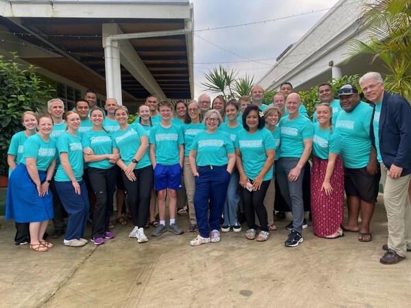 Dr. William Tettelbach (right),volunteers from the charitable foundation Ámanaki Foóu,and local health care professionals during their annual diabetes education and treatment mission at Vaiola Hospital,Nuku'alofa,Tonga.