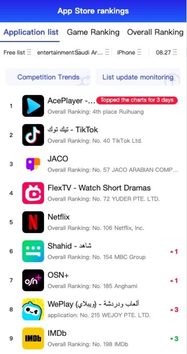 Mega Matrix Announces FlexTV's Surge to Top 4 on the App Store Entertainment Chart (Free Apps, Saudi Arabia) as of August 27, 2024