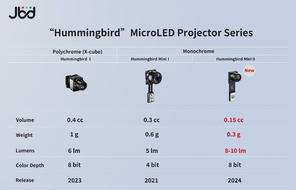 With the addition of the new Hummingbird I optical module and Hummingbird Mini II,JBD's Hummingbird now offers a comprehensive range of products designed to meet the diverse needs of AR applications. JBD's MicroLED solutions are already driving significant innovation in the consumer electronics market,particularly in AR glasses.