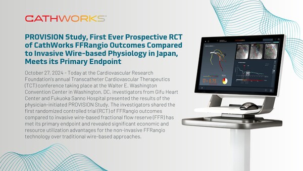 PROVISION Study, First Ever Prospective RCT of CathWorks FFRangio Outcomes Compared to Invasive Wire-based Physiology in Japan, Meets its Primary Endpoint