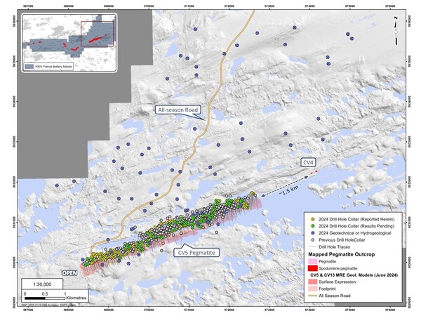 Figure 5: Drill holes completed during 2024 at the CV5 and CV13 spodumene pegmatites.