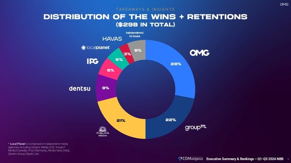 As reported in the recently published Global Media Agency New Business Barometer Q1-Q3 2024 - ananalysis of the global media agency marketplace from independent research companyCOMvergence- OMG was awarded $7.37 billion in client billings – including $4.4 million in retained business - during the first nine months of the year,outperforming its nearest competitor by more than 40 percent. Remarkably,OMG also earned the highest retention rate,successfully defending 85% of its billings in review while concurrently expanding its client roster.