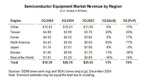 Q3 2024 Global Semiconductor Equipment Billings Grew 19% Year-Over-Year,SEMI Reports