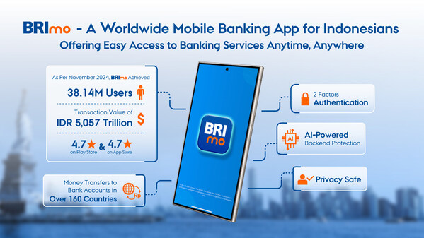 JAKARTA,Indonesia,Jan. 9,2025 -- PT Bank Rakyat Indonesia (BRI) Persero Tbk. (IDX: BBRI) presents the #BRImoWorldXperience,expanding BRImo's cross-border capabilities. The super-app also reinforces BRI's leadership in financial digitalization,with nearly 99% of transactions now digitized. As of November 2024,BRImo users reached 38.1 million,an increase of 22.9% year-on-year. Meanwhile,BRImo recorded a transaction value of IDR 5,057 trillion,driving BRI's business with an IDR 2.64 trillion fee-based income poised for continuous growth. "With an impressive rating of 4.7 on the Play Store & App Store,BRImo was Indonesia's most-downloaded mobile banking app in 2024," said Andrijanto,BRI's Director of Retail Funding and Distribution.