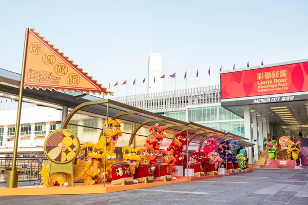 Hong Kong Harbour City Shopping Mall launches "Lions Roar, Blessings Pour" Chinese New Year Decorations. A striking lion dance performance by eighteen lions kicked off the event