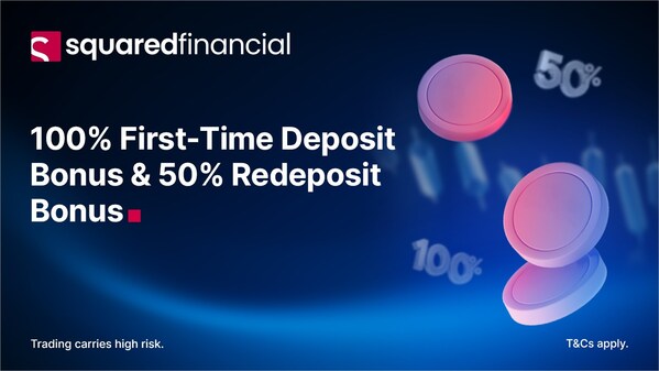 VICTORIA,Seychelles,Feb. 4,2025 --Leading fintech firm,SquaredFinancial is proud to announce a new bonus promotion designed to provide investors with powerful resources to make the most of their trading experience. Within the scope of this special offer,subject to terms and conditions,traders can enjoy a 100% bonus upon their first deposit and a 50% bonus every time they redeposit.