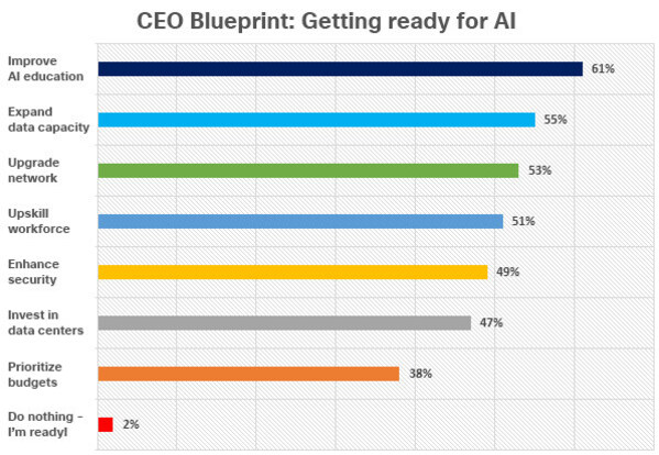 Cisco's research reveals CEOs' plan to turn fear into progress – investing in knowledge and skills,upgrading infrastructure,and enhancing security to prepare for the demands of AI (Figure 2).
