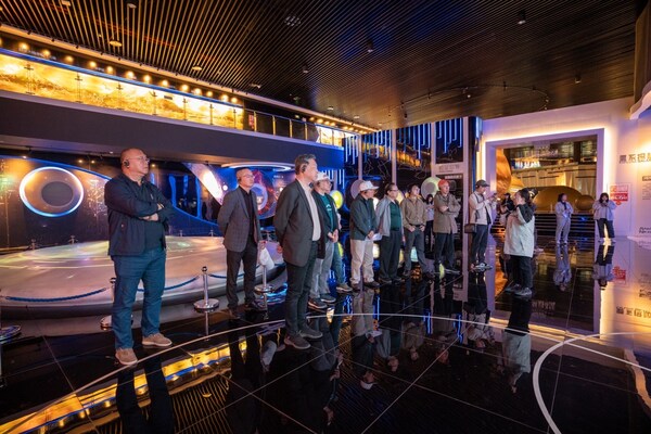 The media group visits the Pingtang International Astronomy Experience Hall at the foot of the FAST