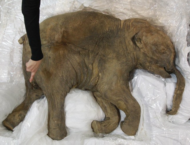 The body of a frozen baby mammoth buried in the Siberian permafrost for 40,000 years (Picture: South China Morning Post)