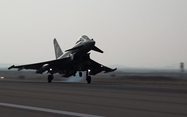 Six RAF Typhoon fighter jets have been based in Poland for the last month (Picture: Turkish Defense Ministry / Handout/Anadolu via Getty Images)