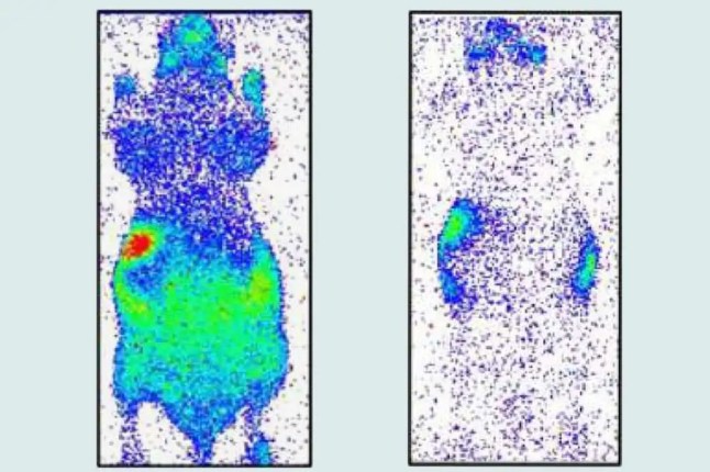 After the mice were euthanised – but kept warm to rule out temperature effects – their bodies stopped emitting photons.