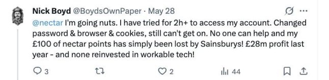 Another said they were ‘going nuts’ trying to resolve £100 of lost points and then being locked out of their account