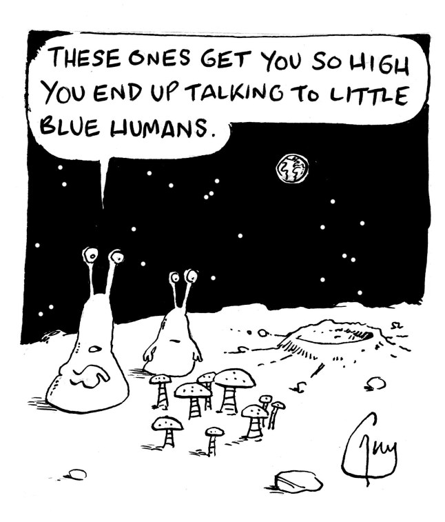 ‘In this case it is clever camera work and some interesting rocks lying next to each other,not mushrooms.’