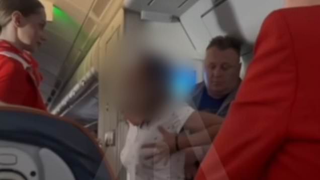 Desperate to end her tantrum,the crew turned to other passengers to overpower her.