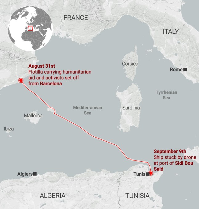 The flotilla’s route before allegedly being struck by a drone (Picture: Metro Graphics)