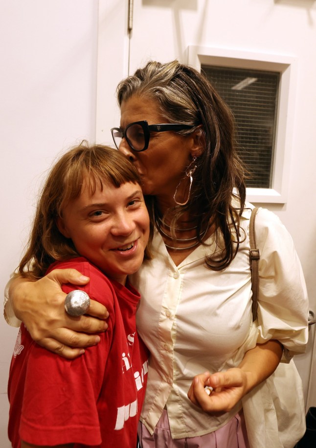 Francesca Albanese,United Nations Special Rapporteur on the Occupied Palestinian Territories (R) and Swedish climate activist Greta Thunberg (L) pictured in Tunis yesterday (Picture: EPA)