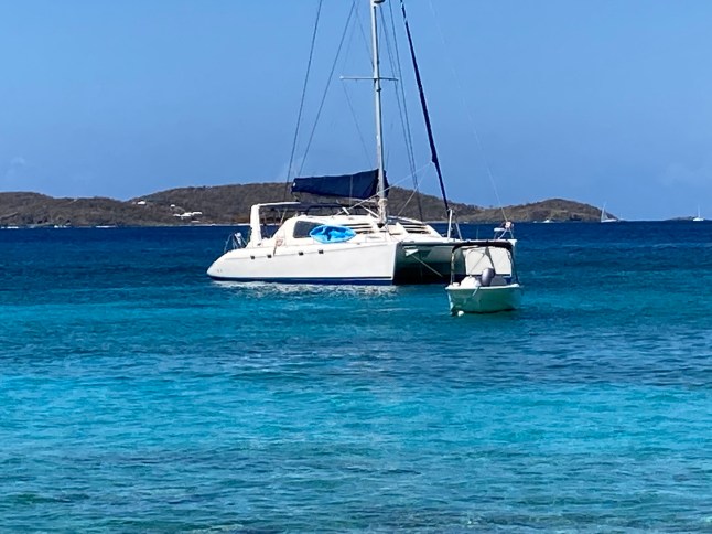 The new footage shows the couple walking on a jetty in Cruz Bay before they board a dinghy to Bane’s 47ft,£500,000 Siren Song catamaran,just six hours before Sarm was reported missing.