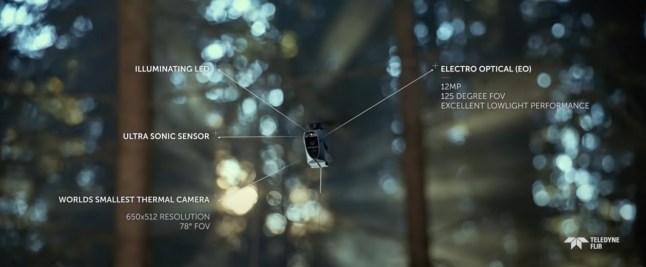 They can be sent out in less than 20 seconds and can fly for more than 30 minutes with a range of 1.9 miles (Picture: Teledyne FLIR)