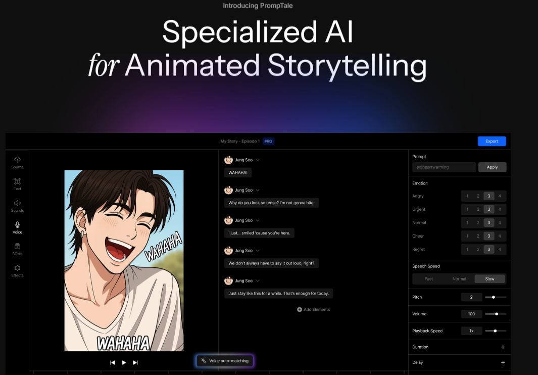 - Narrative-First Coaching of AI – The platform deploys AI engines specialized for animated storytelling: from “character-aware syncing” (where voice emotion and timing are auto-matched) to “dialogue-driven editing” (where a single line of text can grow into a full scene).