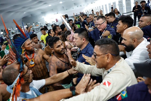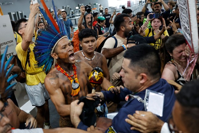 Protesters from indigenous groups clashed with security guards last night after forcing their way into the COP30 summit in Brazil.
